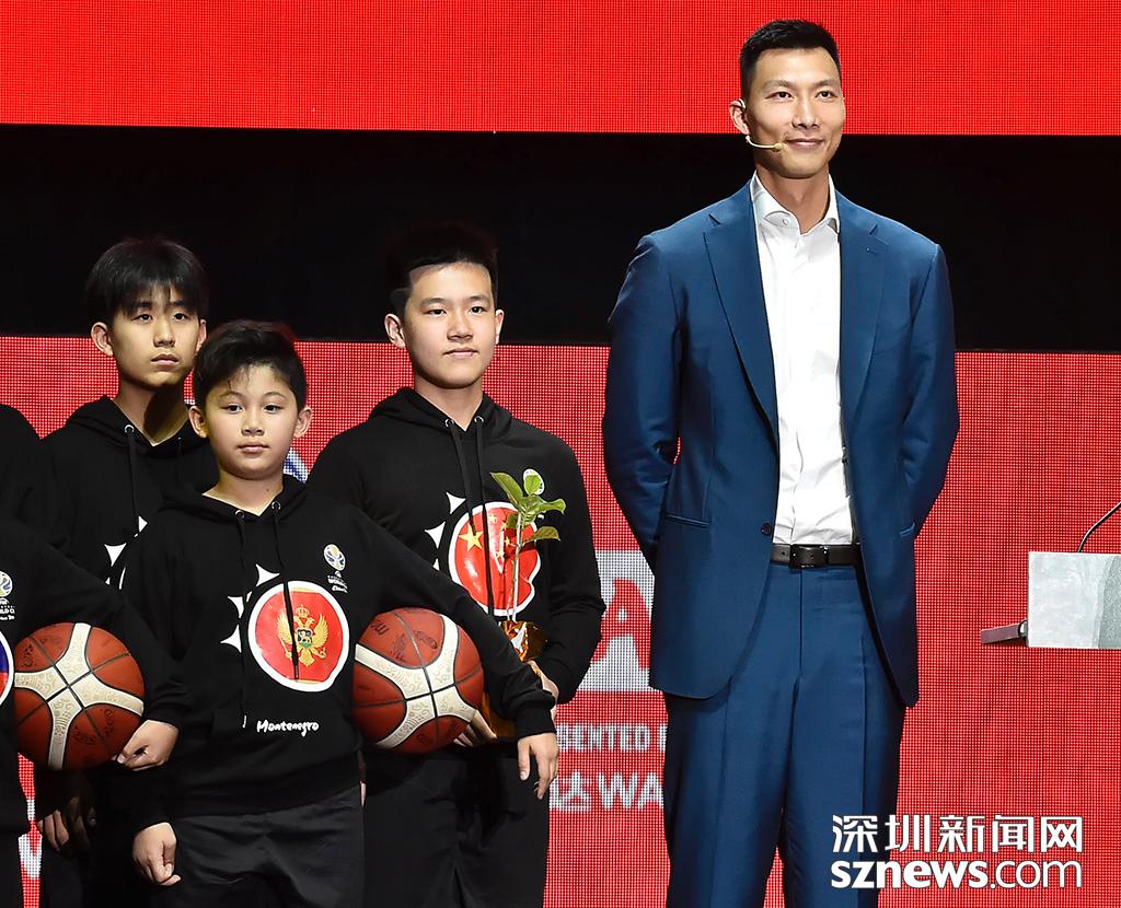 籃球明星易建聯(lián)在抽簽儀式亮相并接受采訪