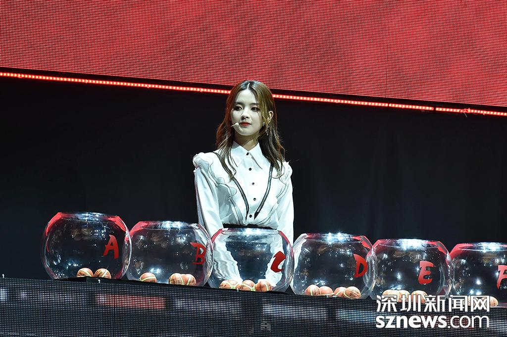 網(wǎng)絡(luò)紅人楊超越在抽簽儀式亮相并和科比合作進行抽簽