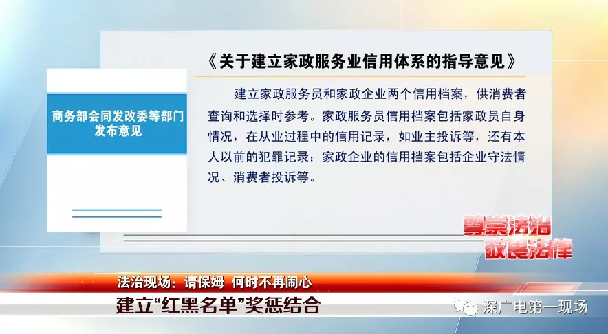今天我們先來關注家政服務這個話題,今年兩會期間、商務部等多部門聯(lián)合發(fā)布了《關于建立、家政服務業(yè)、信用體系的指導意見》,提出要對家政企業(yè)和從業(yè)人員建立信用檔案,發(fā)布紅黑榜。