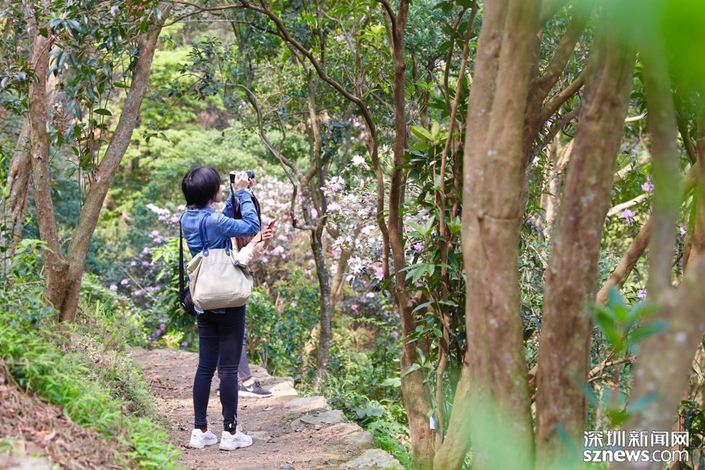 梧桐山成踏春賞花打卡點,市民用相機(jī)記錄下毛棉杜鵑之美。