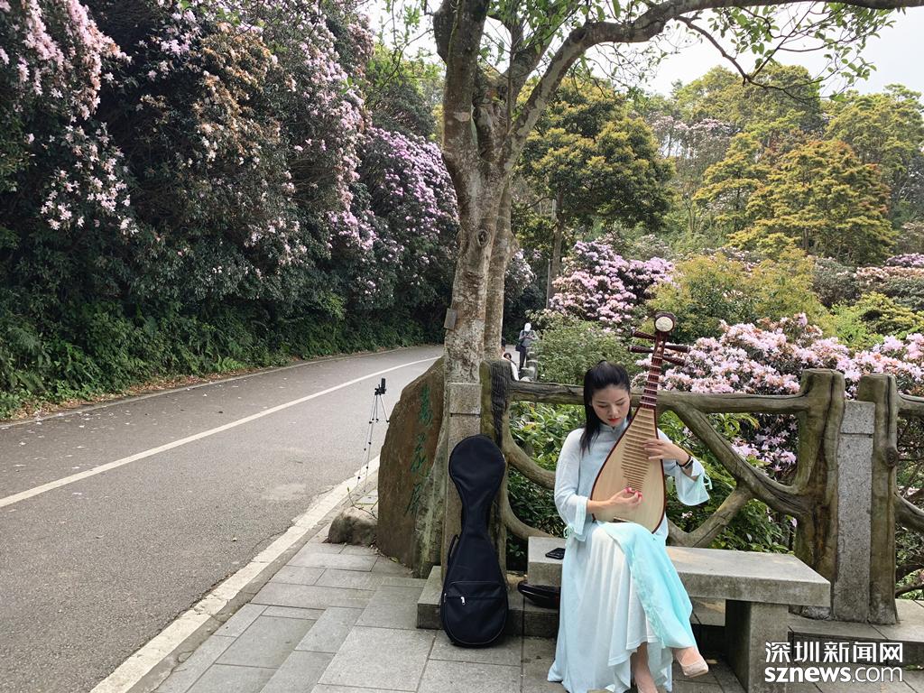 看看這位撫琴的小姐姐,簡直就是“人比杜鵑花美”