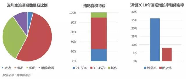 報告著重以夜店、清吧、餐吧、精釀啤酒吧為主要研究對象。其中,清吧的數(shù)量在主流酒吧業(yè)態(tài)中占比過半——2018年,清吧在深圳超過600家,占據(jù)市場的54%,開業(yè)量超過130家,閉店數(shù)則超過40家,精細(xì)運營成為追求現(xiàn)象級爆紅的“網(wǎng)紅”酒吧發(fā)展的主要瓶頸。