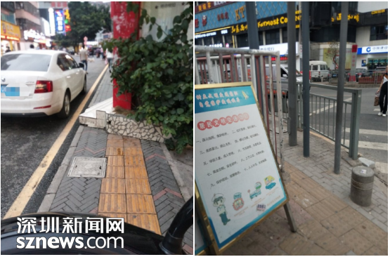 部分商家、及路燈石柱等占道