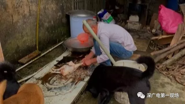 這名男子將活禽拿到了民房旁邊的一處宰殺點,另外一名年長一點的男子接過活雞就地宰殺。
