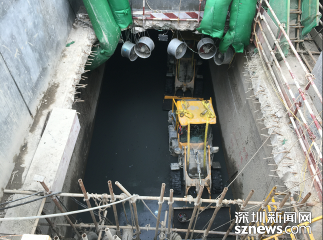 面對20年來皇崗河渠內(nèi)堆積的淤泥,吳東海介紹,在施工過程中還會遇到有毒氣體突然升高的情況。雖然送風(fēng)機在24小時工作,但是厚積的淤泥在翻動時會出現(xiàn)氣體涌出?!按藭r施工人員的氣體檢測儀若發(fā)生報警的話,我們第一準則是所有人員第一時間撤出。”