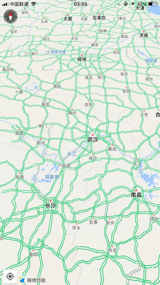 再隨便來看凌晨3點05分的幾個城市,重慶、武漢、長沙、南昌等,周邊路況顯示良好。