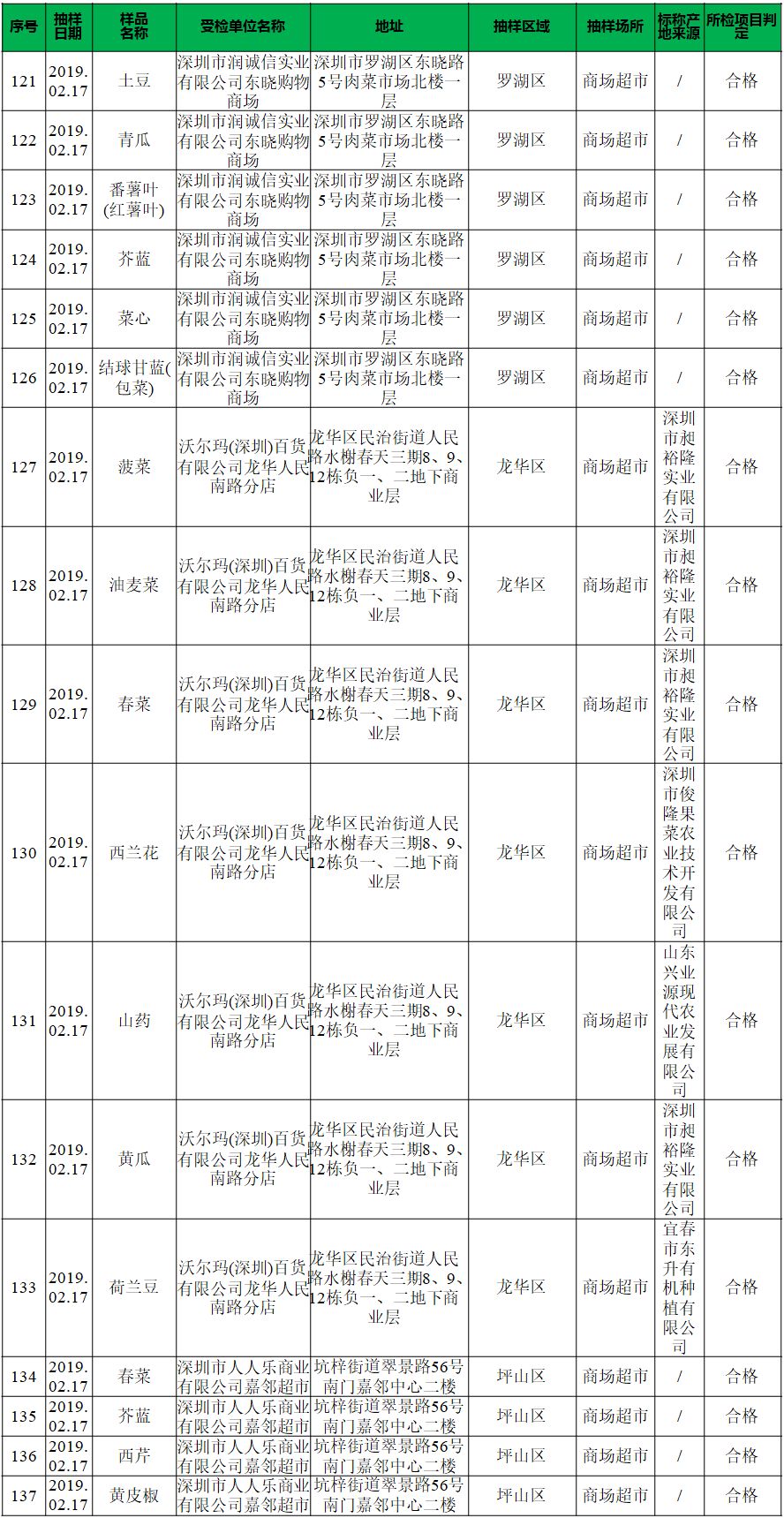 豬肉產(chǎn)品和蔬菜抽檢結(jié)果