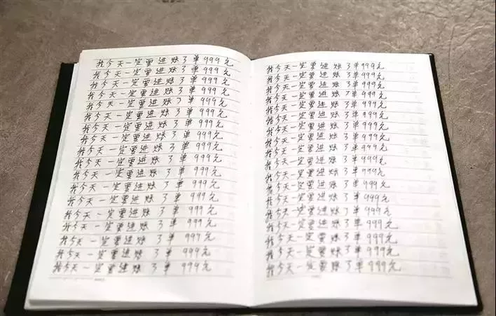 在楊某辦公臺上有一本筆記本,里面整整24頁寫得密密麻麻,卻反反復(fù)復(fù)只寫了一句話:“我今天一定要進(jìn)賬3單,999元”。