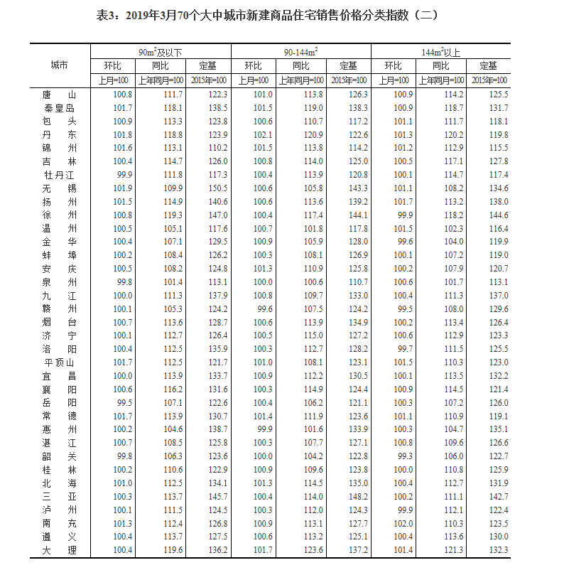 今天上午,國家統(tǒng)計局發(fā)布3月份70個大中城市新建商品住宅銷售價格。