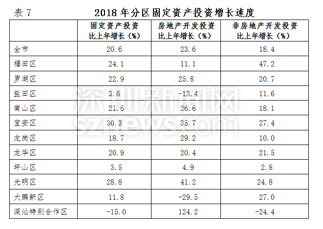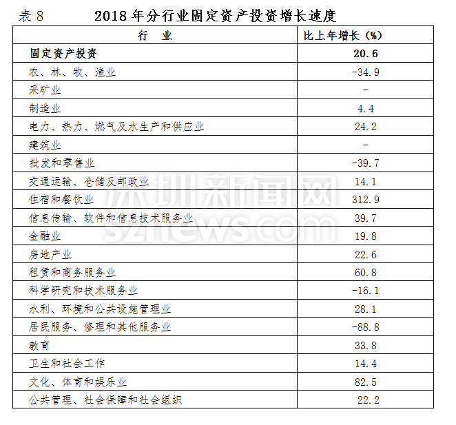 2018年,深圳全市固定資產(chǎn)投資比上年增長(zhǎng)20.6%。其中,房地產(chǎn)開發(fā)投資增長(zhǎng)23.6%;非房地產(chǎn)開發(fā)投資增長(zhǎng)18.4%。分投資主體看,國(guó)有經(jīng)濟(jì)投資增長(zhǎng)36.7%;民間投資增長(zhǎng)12.5%;港澳臺(tái)商經(jīng)濟(jì)投資下降22.6%;外商經(jīng)濟(jì)投資增長(zhǎng)30.3%。