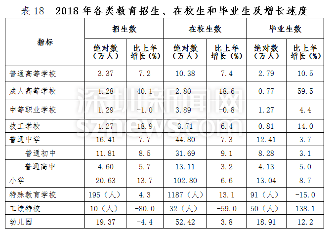 深圳新聞網(wǎng)2019年4月19日訊(記者 劉夢(mèng)婷 通訊員 胡雪濤)4月19日,記者從深圳市統(tǒng)計(jì)局獲悉,深圳市2018國(guó)民經(jīng)濟(jì)與社會(huì)發(fā)展統(tǒng)計(jì)公報(bào)出爐:全市實(shí)現(xiàn)地區(qū)生產(chǎn)總值24221.98億元,比上年增長(zhǎng)7.6%,常住人口達(dá)1302.66萬(wàn)人。人均可支配收入57543.60元,居民人均消費(fèi)支出40535.02元。總體來看,2018年深圳經(jīng)濟(jì)運(yùn)行穩(wěn)健,主要經(jīng)濟(jì)指標(biāo)表現(xiàn)良好,高質(zhì)量發(fā)展扎實(shí)推進(jìn)。