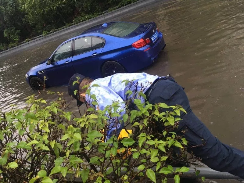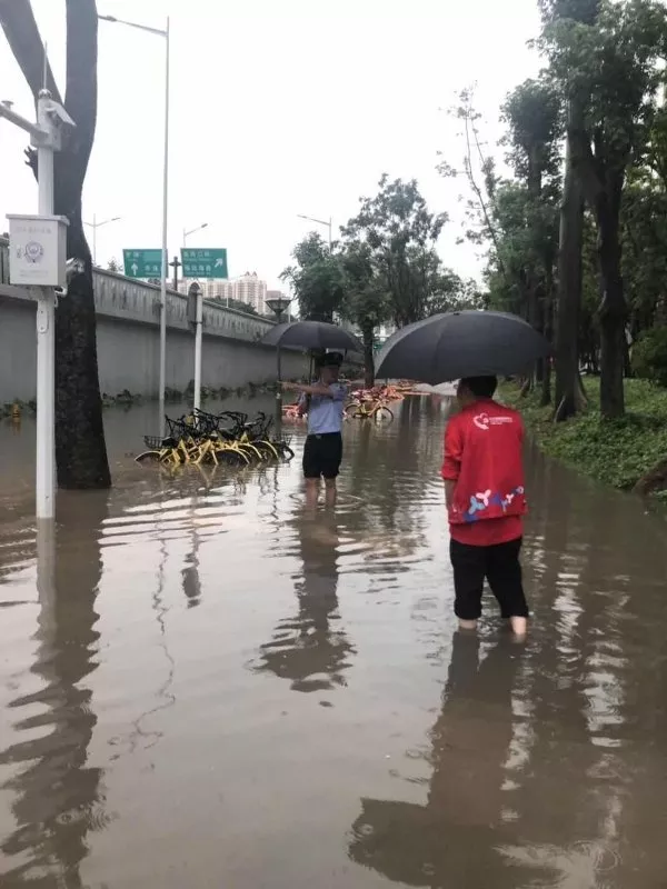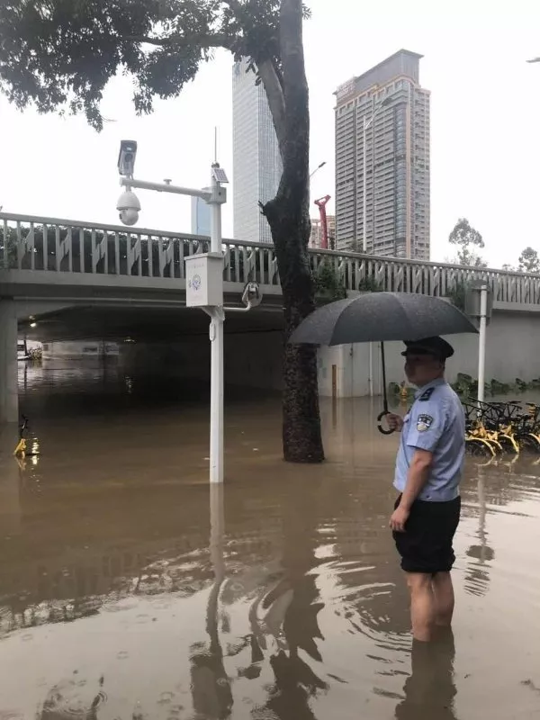 昨日上午9時許,福田區(qū)突降暴雨。福強派出所民警周玉鐮和蘭東階發(fā)現(xiàn)皇崗立交橋下出現(xiàn)積水,對過往車輛和行人造成隱患,立即開展疏導交通和幫助群眾工作,直至積水退去。
