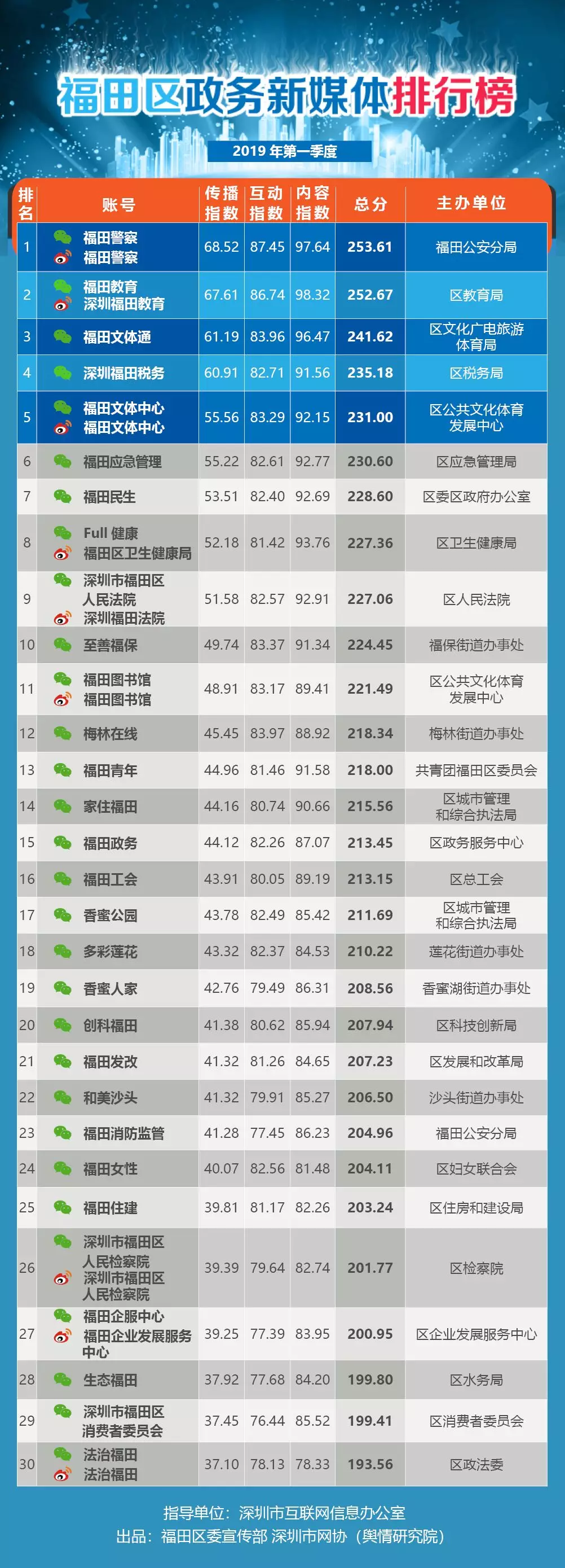 《福田區(qū)政務(wù)新媒體排行榜》出爐啦!!