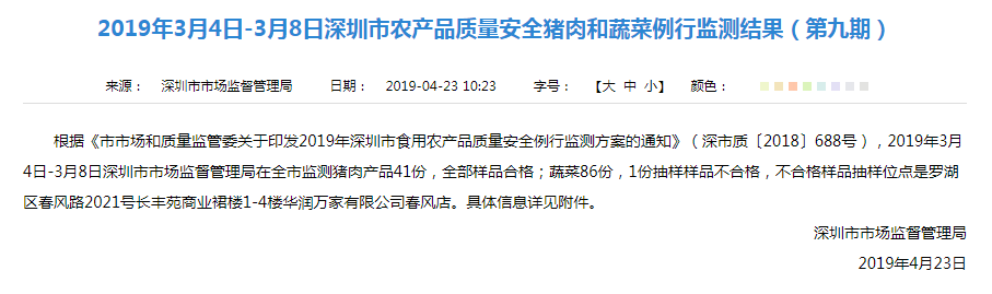 豬肉產(chǎn)品和蔬菜抽檢結(jié)果