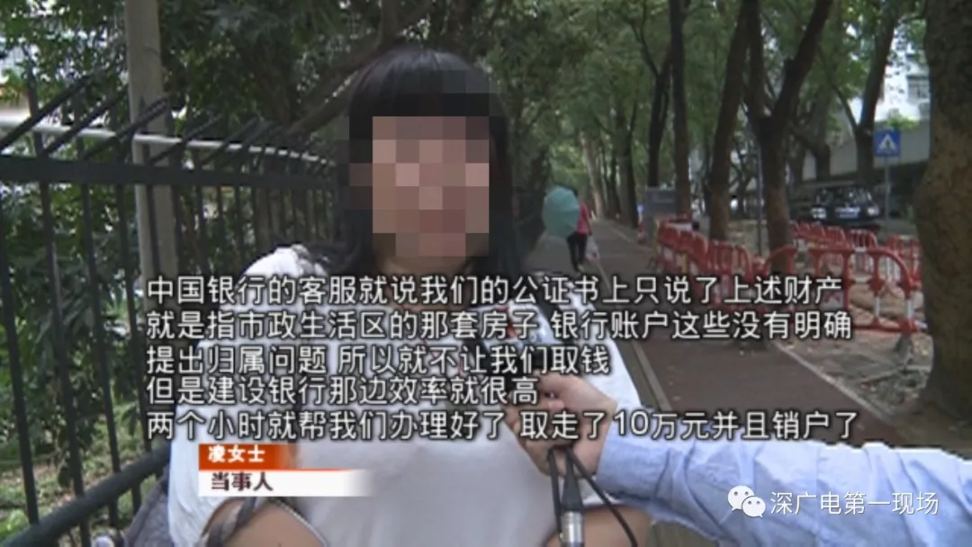 建設(shè)銀行賬戶的10萬元,凌女士和婆婆周女士拿著相關(guān)資料,順利取款并做了銷戶處理。但是她們?nèi)サ街袊y行福田支行時(shí),卻被銀行柜臺以公證書中未明確銀行賬戶歸屬為由,拒絕辦理取款銷戶業(yè)務(wù)。