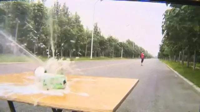 ↑記者網(wǎng)購(gòu)彈弓做了個(gè)試驗(yàn),對(duì)著易拉罐射出,三瓶直接懟穿