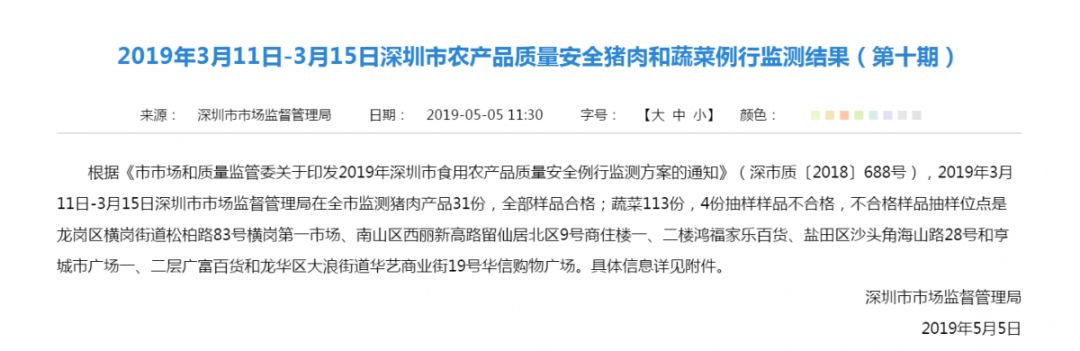 “2019食用農(nóng)產(chǎn)品抽檢第十期”