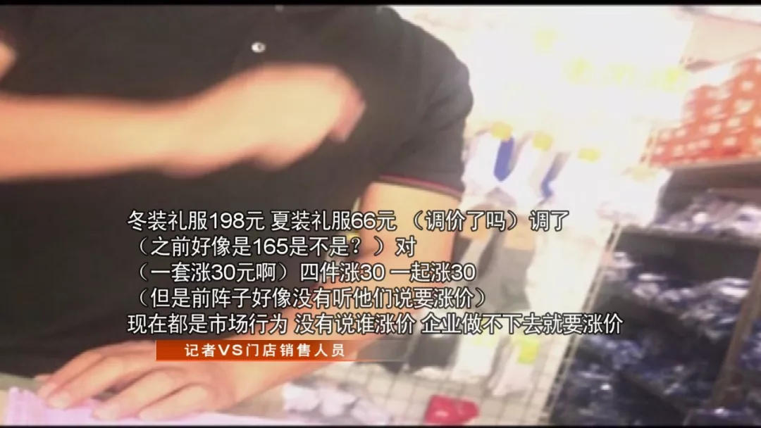 在記者走訪的多家校服專營(yíng)門店中,對(duì)于漲價(jià)的問(wèn)題,門店銷售人員的呼聲也是越來(lái)越高。