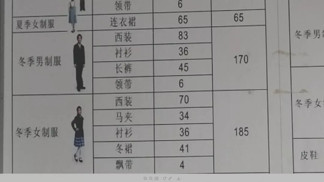 從龐女士發(fā)過來的圖片中記者看到,此前這家店的校服價格表中,小學(xué)學(xué)生冬季制服價格為165元。