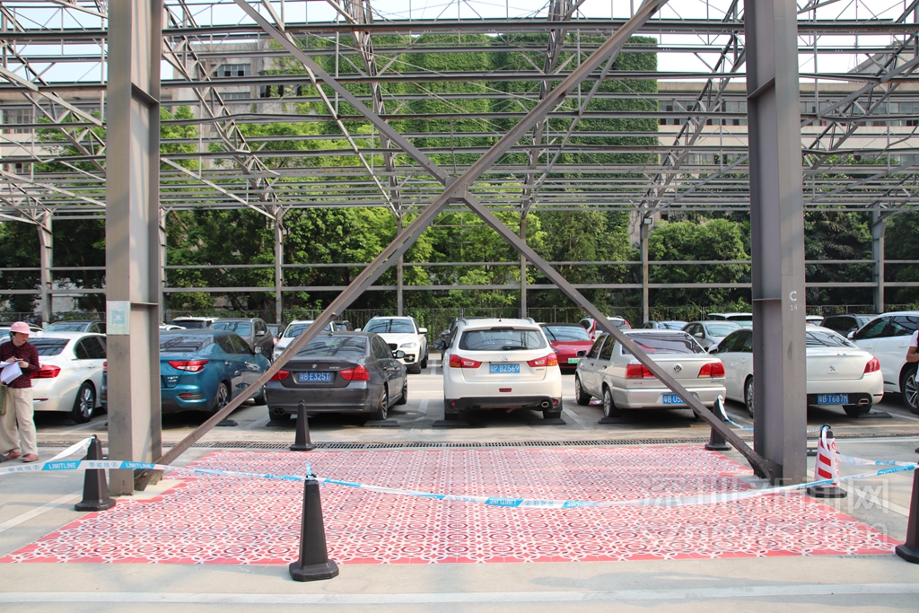 公共空間中明亮的、規(guī)則的色彩往往讓行人眼前一亮。西班牙視覺藝術(shù)家Javier de Riba帶來花磚涂鴉作品《安全地帶》,用彩色油漆仿制瓷磚的質(zhì)感進行創(chuàng)作,通過規(guī)則、反復的美好圖案,增加公共停車區(qū)域的家園感和安全感。這一作品還在開幕前開展工作坊,邀請公眾和志愿者一同參與完成。