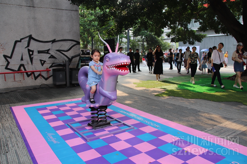 獨(dú)立插畫師羅曉駿擅長(zhǎng)塑造他對(duì)情感、對(duì)夢(mèng)想的思考,曾于深圳 ONO Infection、OCTCC藝術(shù)空間、香港、北京、日本等地多次舉辦個(gè)展和群展。此次作品《夢(mèng)玩游樂場(chǎng)》希望給園區(qū)內(nèi)的行人帶來童話般的浪漫感受。