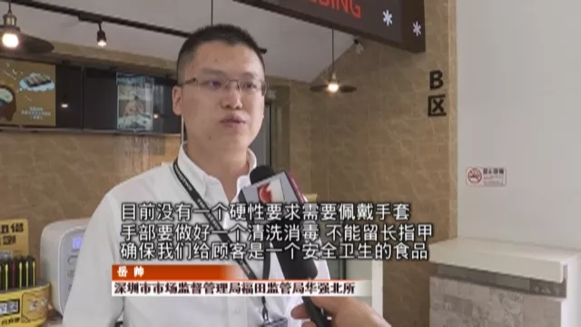 該店的同事趕緊進(jìn)到廚房進(jìn)行提醒,這名店員隨后也急忙戴上了手套!