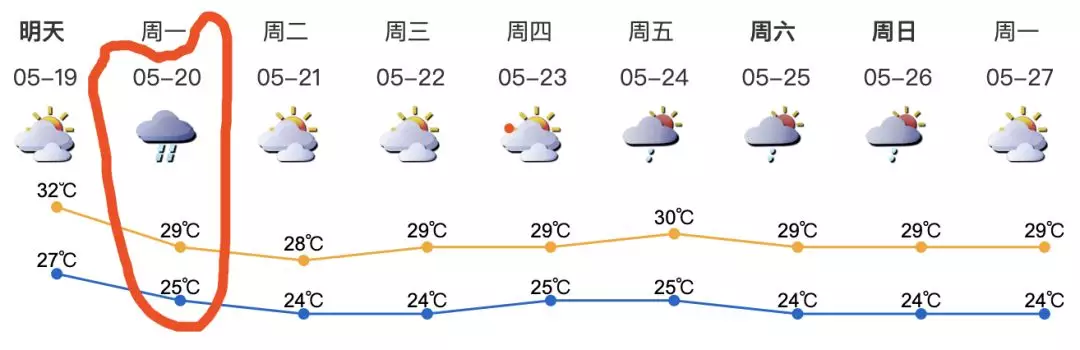 19日多云,局地有短時陣雨或雷雨,天氣悶熱;20日有一次明顯降雨過程,局部地區(qū)有暴雨,伴有雷暴大風。21日起轉(zhuǎn)多云,氣溫略降↓,悶熱天氣緩解。