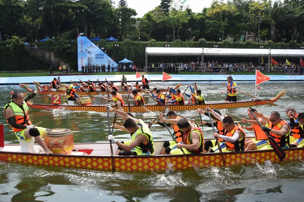 5月19日上午9點,由深圳市文化廣電旅游體育局、龍華區(qū)人民政府主辦,龍華區(qū)文化廣電旅游體育局、觀湖街道辦事處承辦的龍華區(qū)2019年觀瀾河國際龍舟賽社區(qū)組、機關企事業(yè)組標準龍舟(12人龍舟)350米男子直道競速賽正式打響。