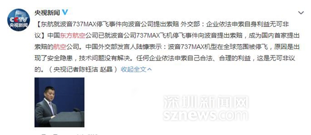 東方航空公司向波音公司提起索賠相關報道頁面截圖