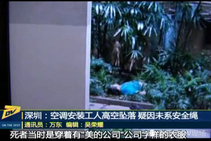 從拍攝的視頻可以看到,死者當(dāng)時(shí)是穿著有"美的公司"公司字樣的衣服,目擊者說,死者是在13樓安裝空調(diào)外機(jī)時(shí)出事的。