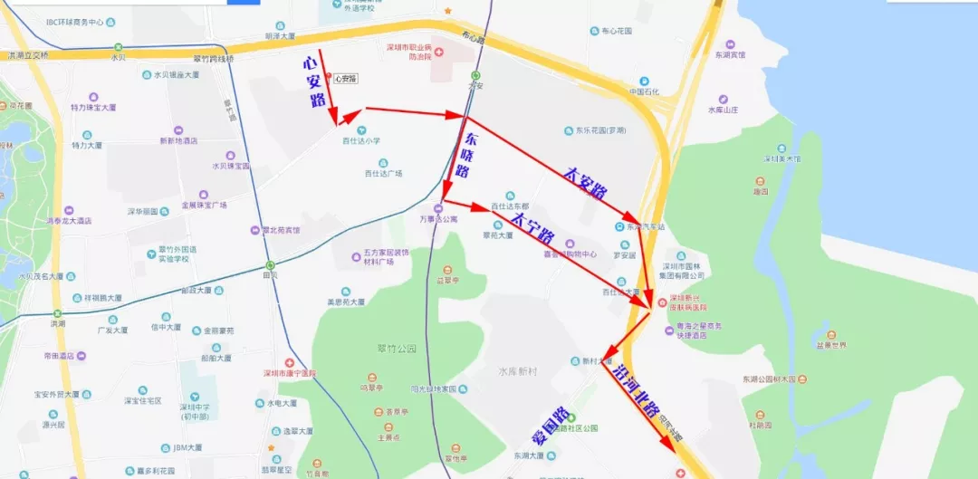 布心路南側輔道(東行)往愛國路方向道路中,心安路與東曉路至布心路主路入口道路已于2019年5月24日21時,被永久封閉。