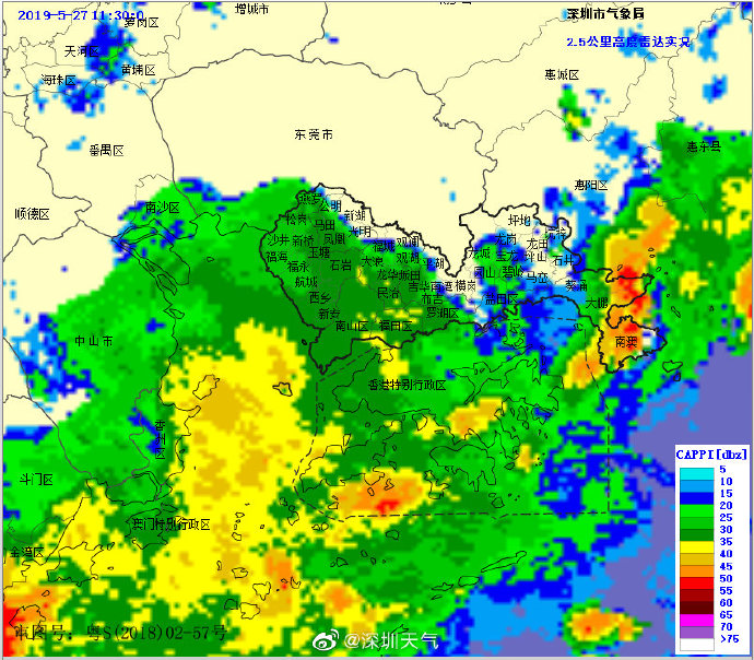 強降雨將趨于結(jié)束,深圳市氣象臺于2019年05月27日12時30分在全市取消暴雨黃色預警,預計今天白天仍有雷陣雨,部分時間雨勢較大,市民仍需注意遠離河道和危險邊坡等