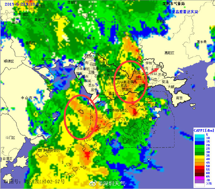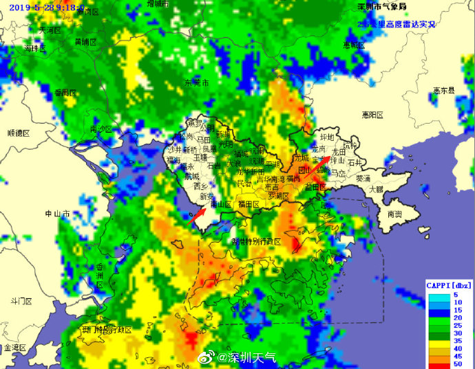 目前強(qiáng)降水中心已移至我市中部地區(qū),未來(lái)1-2小時(shí)內(nèi)東部地區(qū)將出現(xiàn)20-40毫米降水,深圳市氣象臺(tái)于2019年05月28日09時(shí)15分將暴雨黃色預(yù)警擴(kuò)展至全市,全市進(jìn)入暴雨戒備狀態(tài),請(qǐng)注意防范。