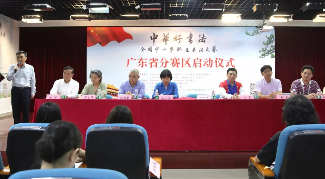 原深圳市文聯(lián)副主席、“中華好書法”全國(guó)中小學(xué)師生書法大賽書法大賽組委會(huì)副主任兼廣東省分賽區(qū)組委會(huì)主任顧煥金,在啟動(dòng)儀式上他從政治意義,文化意義及時(shí)代意義三個(gè)方面,闡述了這次大賽的重要性、必要性。并向全省中小學(xué)師生發(fā)出了邀請(qǐng),他希望廣大師生積極參與本次大賽,以高水平的書法作品展示廣東中小學(xué)師生的書法藝術(shù)水平,并通過本次大賽,進(jìn)一步弘揚(yáng)祖國(guó)優(yōu)秀傳統(tǒng)文化,助力全省書法教師隊(duì)伍建設(shè),推動(dòng)中小學(xué)書法教育的健康發(fā)展,促進(jìn)優(yōu)秀傳統(tǒng)書法及書法精神的滲透與傳播。