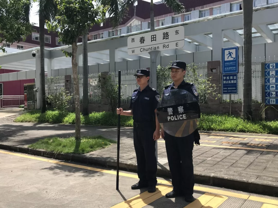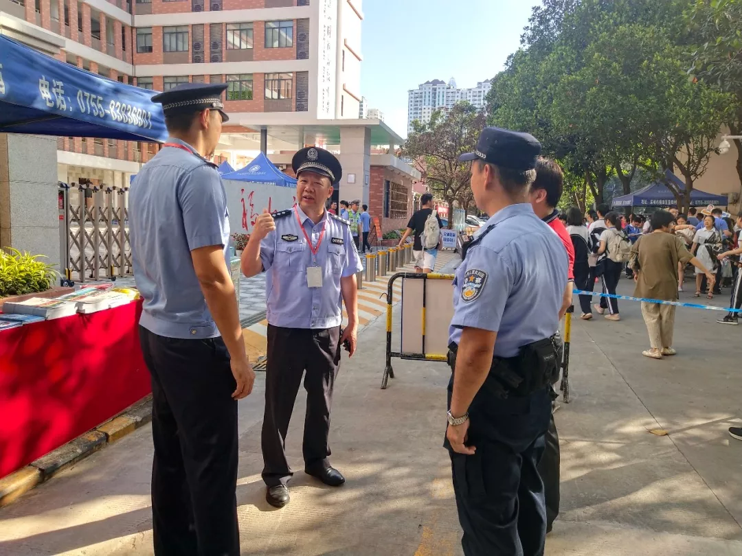 考試開始和結束時,在深圳實驗學校中學部的考場外,家長們自發(fā)組織的義工服務隊也正在有序地維護著考場外的秩序。通心嶺派出所積極與本次家長義工服務隊的成員溝通,在考試結束后散場時能夠快速緩解人流,保證考場周邊的秩序。
