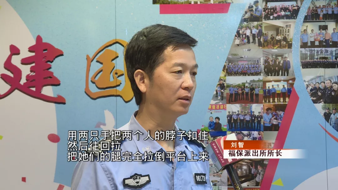 關(guān)鍵時刻,劉智一個箭步上前,雙手迅速摟住兩名女子的脖子,身體往后倒,順勢把二人從屋檐上拉了下來。
