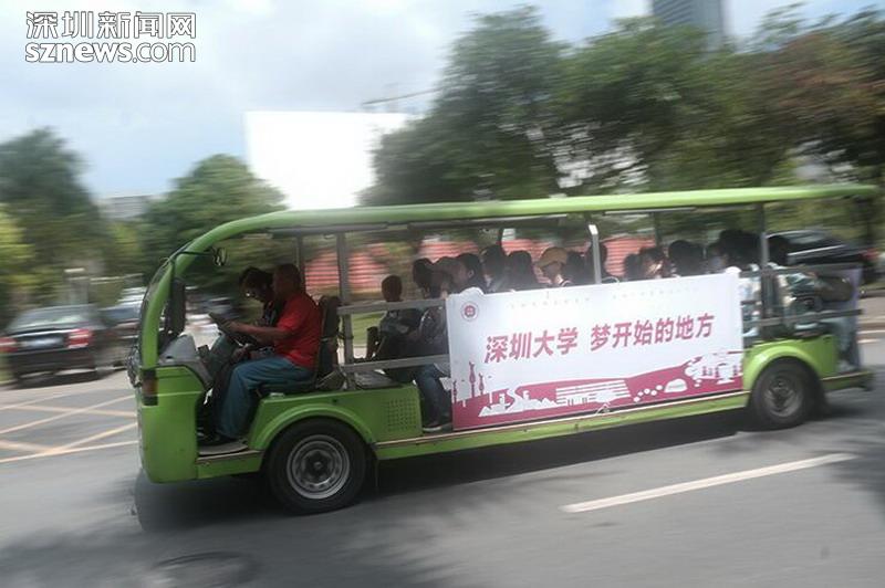 開放日校方免費(fèi)開放了電瓶車搭載學(xué)生家長進(jìn)行參觀