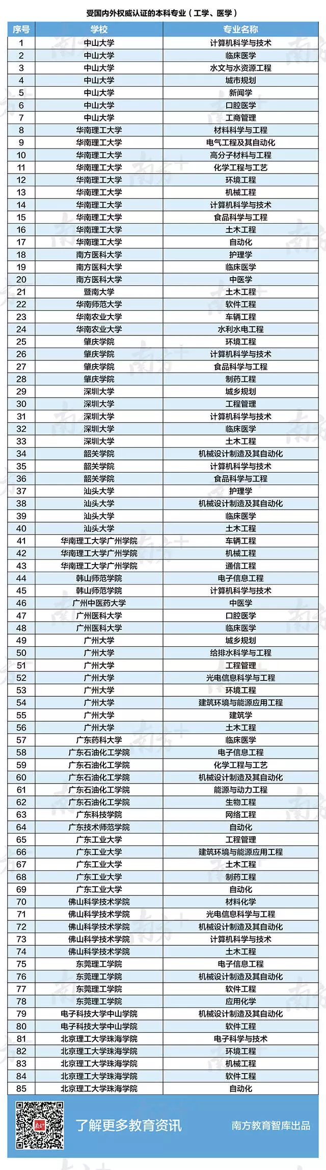 統(tǒng)計工學(xué)類和醫(yī)學(xué)類專業(yè)發(fā)現(xiàn),廣東共有85個專業(yè)獲得國內(nèi)外認證,其中華南理工大學(xué)10個、廣州大學(xué)8個、中山大學(xué)7個,位居全省前3位,理科考生可以作為參考。