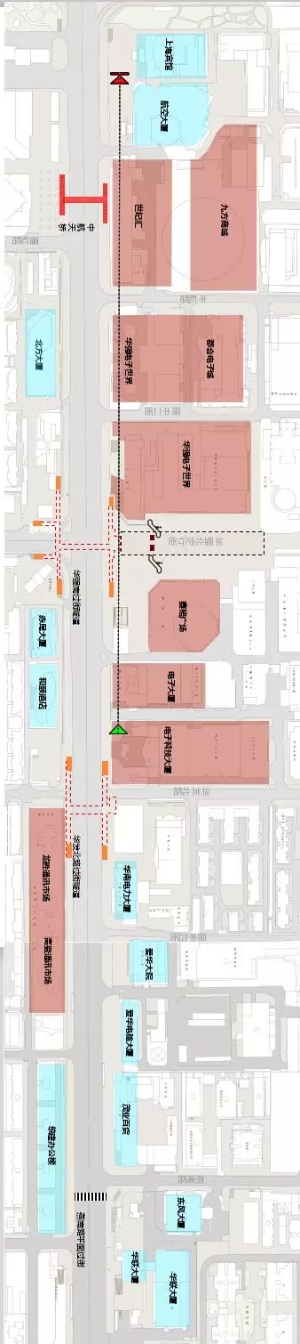 中航天橋、華強(qiáng)南地下過(guò)街隧道、華發(fā)北路過(guò)街隧道以及燕南路地面過(guò)街斑馬線。