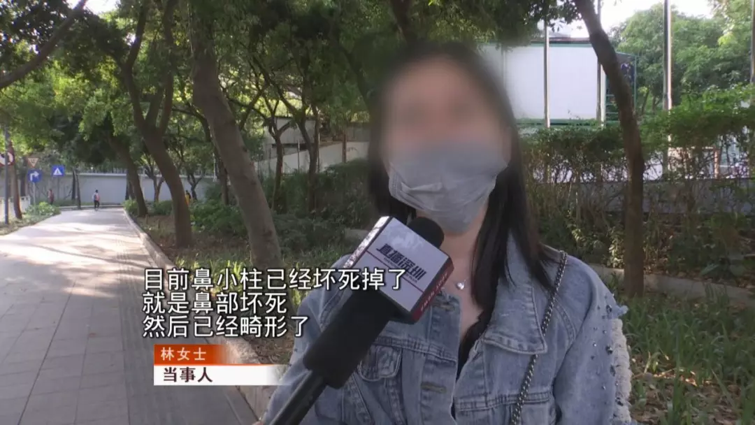 林女士今年23歲,去年12月底,在朋友的推薦下,林女士就到南山的恩吉娜醫(yī)療美容門診部進(jìn)行肋軟骨隆鼻手術(shù),不料經(jīng)過(guò)兩次手術(shù)后,林女士的鼻子,卻畸形得厲害。