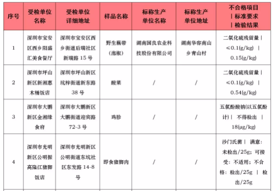 本次抽檢不合格食品