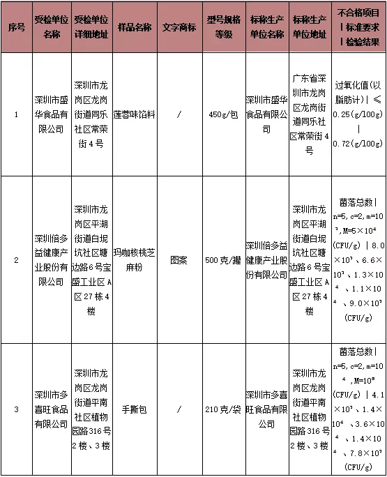 本次共抽檢生產(chǎn)環(huán)節(jié)食品291批次,涉及生產(chǎn)環(huán)節(jié)經(jīng)營(yíng)主體168家次,共檢測(cè)食品指標(biāo)3219項(xiàng)次。其中檢出不合格樣品3批次,涉及不合格食品類(lèi)別有其他食品1批次,方便食品1批次,糕點(diǎn)1批次;涉及不合格項(xiàng)目類(lèi)別為微生物污染、品質(zhì)指標(biāo)。