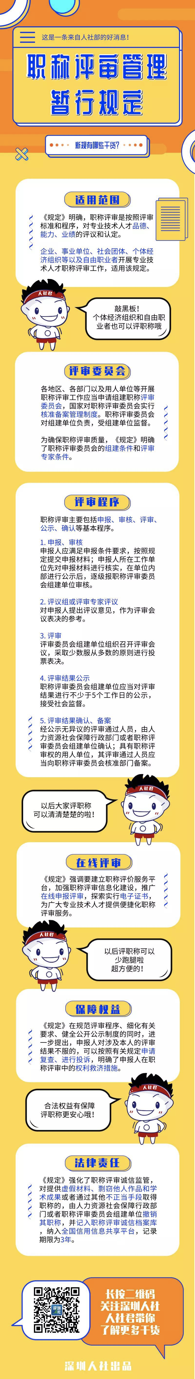 深圳特區(qū)報(bào)2019年7月12日訊 個(gè)體經(jīng)濟(jì)組織、自由職業(yè)者可以開展專業(yè)技術(shù)人才職稱評審;推廣在線評審,探索實(shí)行職稱評審電子證書;不正當(dāng)手段取得職稱的,記入職稱評審誠信檔案庫……7月11日,記者從深圳市人力資源和社會(huì)保障局獲悉,《職稱評審管理暫行規(guī)定》(以下簡稱《規(guī)定》)將于9月1日起施行,這是國家深化職稱制度改革、加強(qiáng)職稱評審管理、完善職稱政策法規(guī)體系的一項(xiàng)重要舉措。