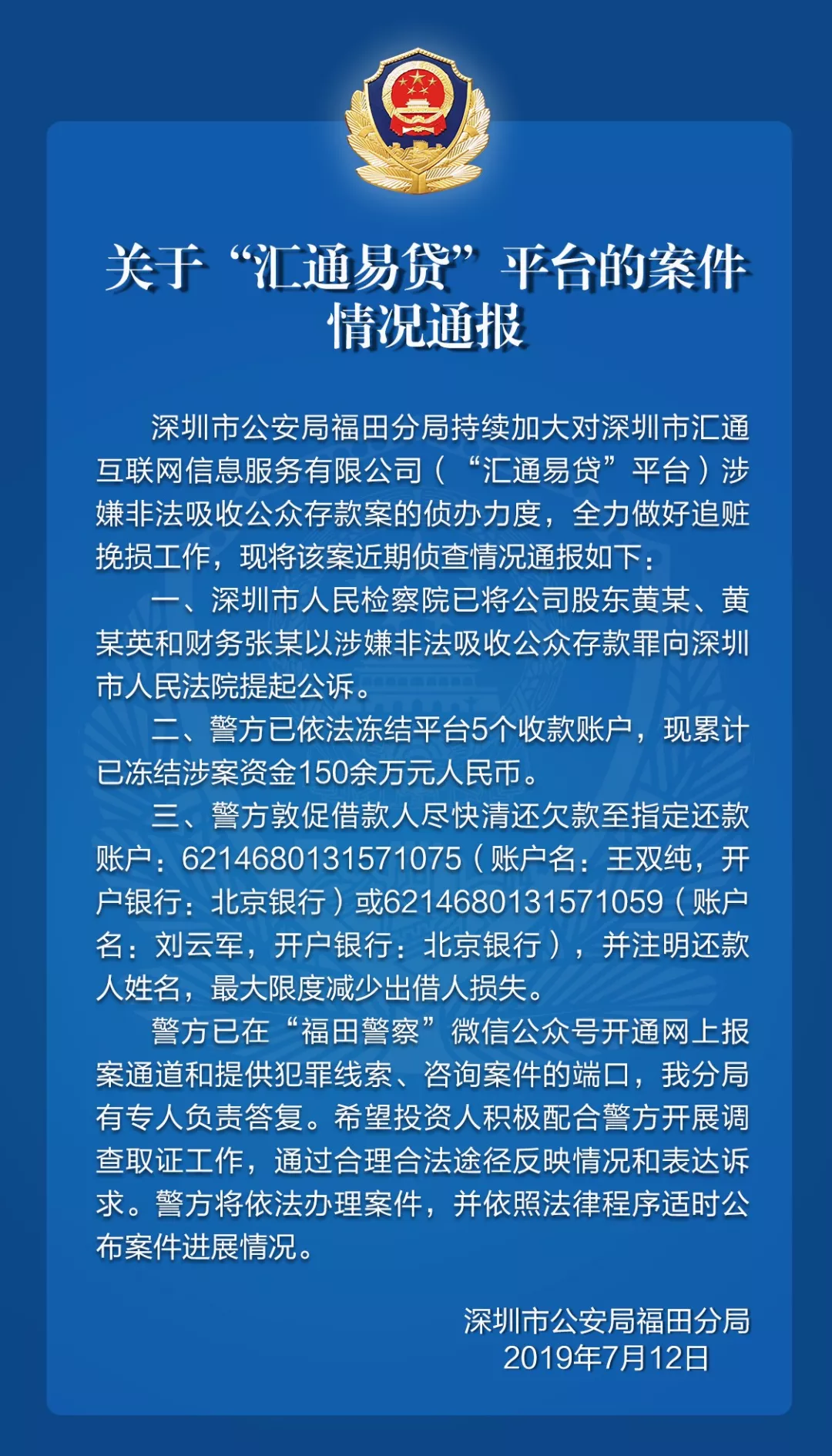 關(guān)于“匯通易貸”平臺(tái)的案件情況通報(bào)