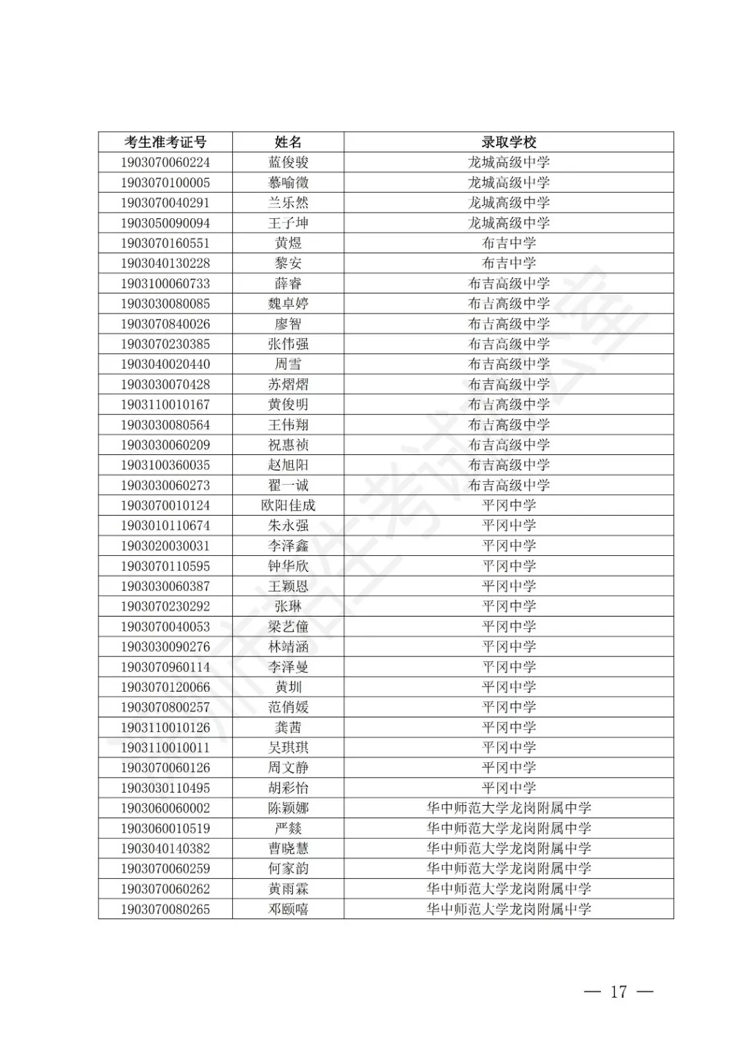 各學(xué)校特色團(tuán)隊(duì)錄取名單(按考生號(hào)順序)