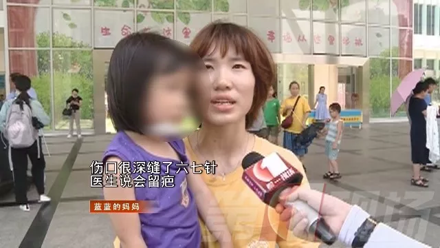 同樣遭遇意外的,還有三歲半的小女孩藍(lán)藍(lán),她的下巴被包扎了起來,病例里寫著:她的下巴里面有一條3厘米長(zhǎng),0.5厘米深的傷口。那么,藍(lán)藍(lán)又是怎么受傷的呢?