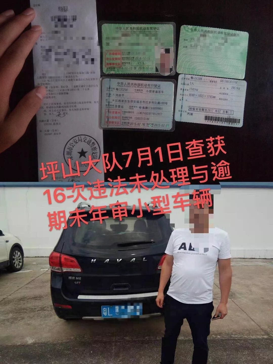 7月1日,深圳交警在坪山大道區(qū)委區(qū)政府路段查獲一16次違法未處理、逾期未年審小型車輛,目前民警已依法將該車扣留,并對(duì)其違法行為進(jìn)行了處罰,及時(shí)消除了道路交通安全隱患。