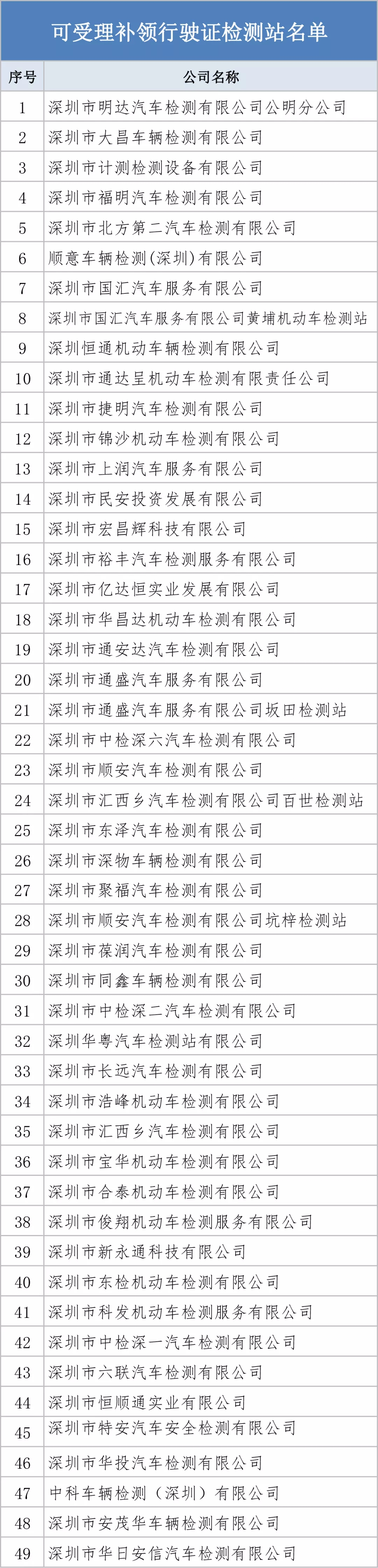 僅限深圳機(jī)動(dòng)車,在下列49家檢測(cè)站辦理年檢業(yè)務(wù)才可以在檢測(cè)站申請(qǐng)補(bǔ)換領(lǐng)行駛證!
