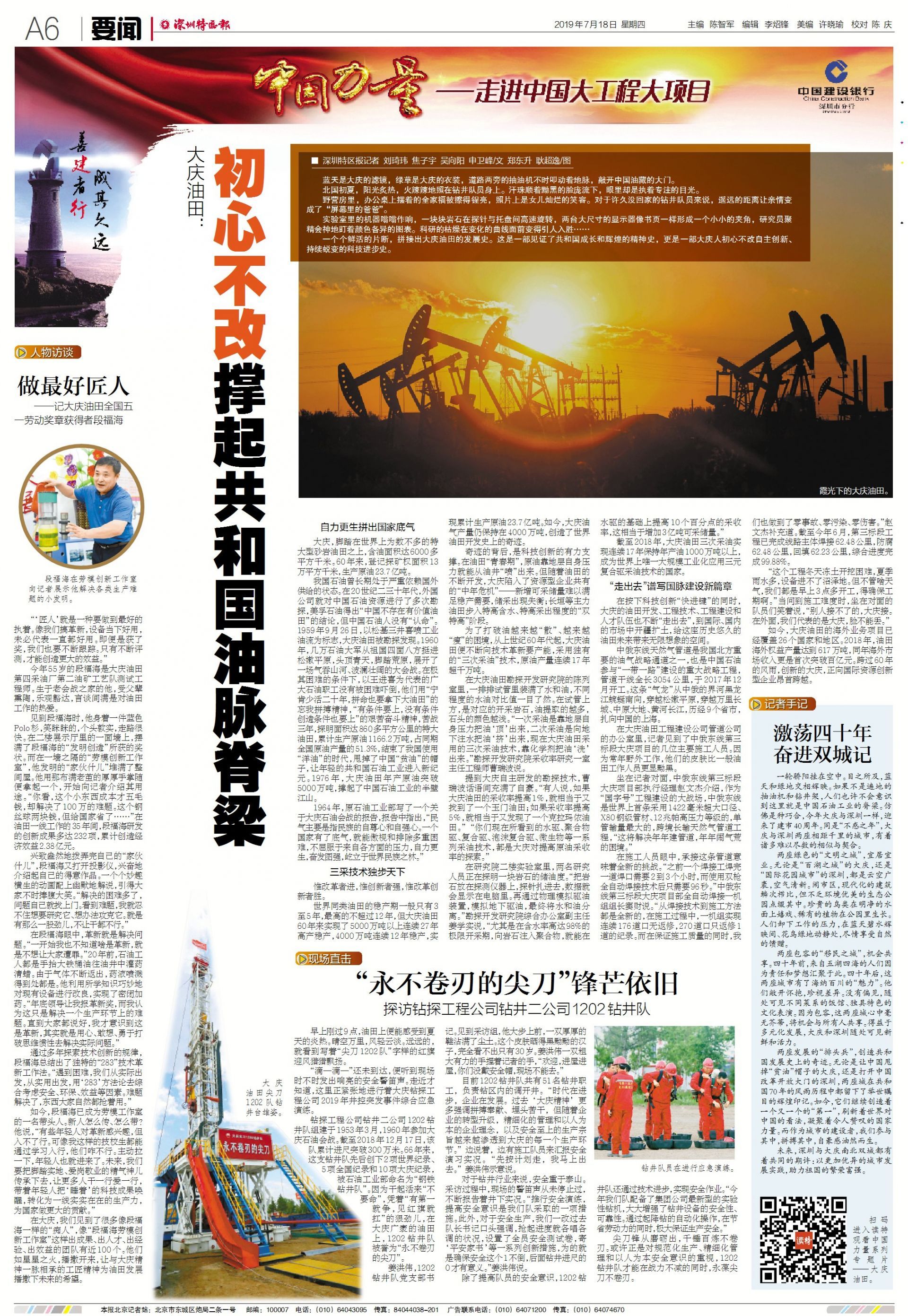 兩座發(fā)展的“排頭兵”,創(chuàng)造共和國發(fā)展史上的奇跡。無論是讓中國甩掉“貧油”帽子的大慶,還是打開中國改革開放大門的深圳,兩座城在共和國70年的風雨歷程中都留下了舉世矚目的輝煌印記。如今,它們繼續(xù)創(chuàng)造著一個又一個的“第一”,刷新著世界對中國的看法,凝聚著令人贊嘆的國家力量。而作為城市的建設(shè)者,我們參與其中,拼搏其中,自豪感油然而生。