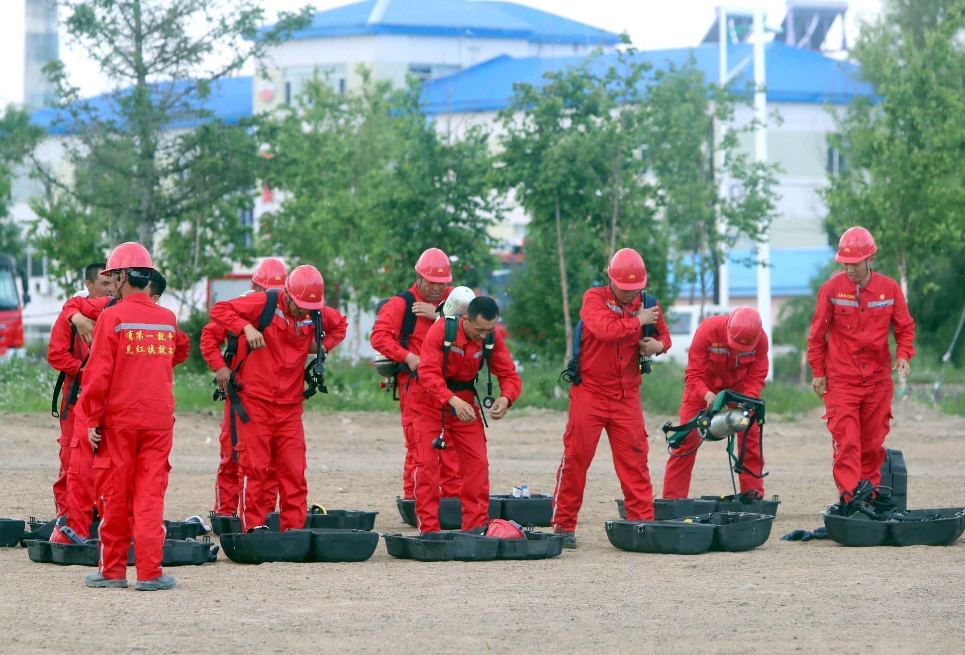 1202尖刀隊鉆井隊員在進行應(yīng)急事故演練。